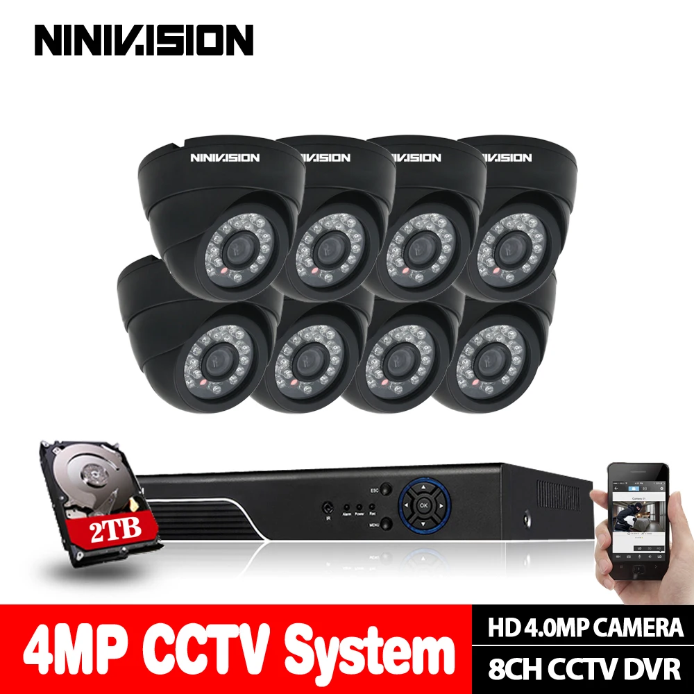 ORIGINAL 8Channel CCTV System Super HD 4MP AHD DVR kit 8Pcs security AHD 4MP Black indoor night vision Camer