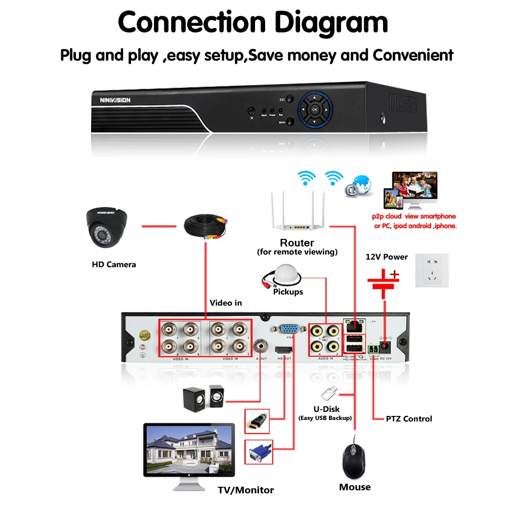 8Channel CCTV System Super HD 4MP AHD DVR kit 8Pcs security AHD 4MP Black indoor night vision Camer