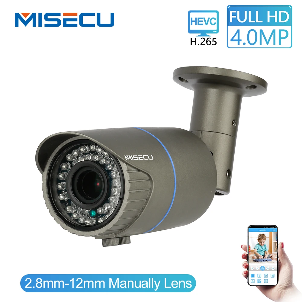BEST MISECU Full HD 4.0MP 2.0MP 1080P 2.8-12mm Manual Zoom Camera IP Power Over Ethernet Outdoor Night V